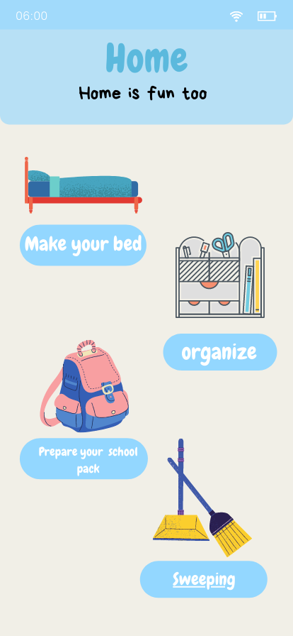 The game will offer many different worlds divided into their own activities. To level up their in-game experience, the children will need the verification of their tutors, in which they will evaluate if the child can successfully apply the knowledge acquired by the virtual platform in a physical environment.